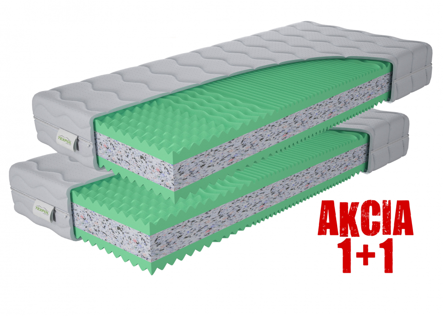 Obojstranný sendvičový 7 - zónový tuhý matrac , ktorý sa skladá z dvoch druhov materiálu, kde základ tvorí POE / RE jadro pre lepšie vystuženie matraca a profilovaná PUR pena - PUR 7 zón profil 30kg/m3, POE/RE pena 70 kg/m3 • obojstranne použiteľný a cenovo výhodný matrac • Vďaka penovej profilácii povrchu matraca uvolňuje svalstvo a zlepšuje prekrvenie celého tela počas spánku • odporúčaný rošt: lamelový • štandardné vyhotovenie v poťahu - Silver Line • Poťah - SILVER LINE • Silver Line• kvalitný a príjemne mäkký poťah so schopnosťou regenerácie pokožky ľudského tela • certifikovaný a zdravotne nezávadný OEKO-TEX štandard • odzipsovateľný a prateľný do 60 °C • zloženie: 7% sim, 30% viskóza, 70% polyester, poťah zónovo prešitý s klimatizačnou výplňou, PES vláknom 250 gr/m2