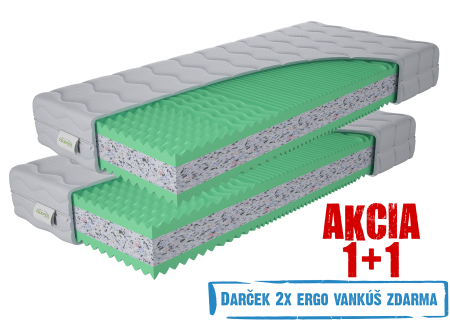 Obojstranný sendvičový 7 - zónový tuhý matrac , ktorý sa skladá z dvoch druhov materiálu, kde základ tvorí POE / RE jadro pre lepšie vystuženie matraca a profilovaná PUR pena - PUR 7 zón profil 30kg/m3, POE/RE pena 70 kg/m3 • obojstranne použiteľný a cenovo výhodný matrac • Vďaka penovej profilácii povrchu matraca uvolňuje svalstvo a zlepšuje prekrvenie celého tela počas spánku • odporúčaný rošt: lamelový • štandardné vyhotovenie v poťahu - Silver Line • Poťah - SILVER LINE • Silver Line• kvalitný a príjemne mäkký poťah so schopnosťou regenerácie pokožky ľudského tela • certifikovaný a zdravotne nezávadný OEKO-TEX štandard • odzipsovateľný a prateľný do 60 °C • zloženie: 7% sim, 30% viskóza, 70% polyester, poťah zónovo prešitý s klimatizačnou výplňou, PES vláknom 250 gr/m2