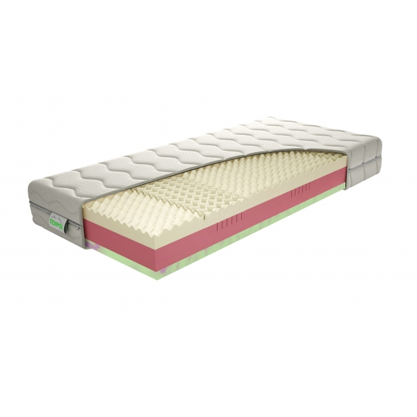 Kvalitný matrac MEMORY FRESH je 18 cm vysoký. Matrac sa skladá z 3 vrstiev rôznych pien. Prvá časť je pamäťová VISCO pena, ktorá je profilovaná do 5 anatomických zón. Tento tzv. fyziosystém zabezpečuje uvoľnenie svalov počas spánku. Stred matraca tvorí HR studená pena. Tretia časť je BIO pena s ultrafresh úpravou likviduje nežiadúce mikroorganizmy - roztoče, plesne, huby. Matrac disponuje komfortným ramenným aj bedrovým zmäkčením, je obojstranný a preto je vhodný pre všetky typy užívateľov.