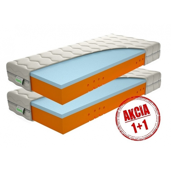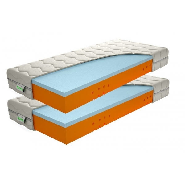 Vysoký 22 cm luxusný matrac je vyrobený z pamäťovej VISCO peny a značkovej PUR peny. Hrubá 4 cm pamäťová pena VISCO sa pod tlakom a telesným teplom dokonale poddá telu a stabilizuje ho v optimálnej polohe. Špeciálne tvarované penové jadro matraca obsahuje okrúhle otvory, ktoré slúžia na okopírovanie chrbtice a uvoľnenie svalstva, čo prispieva ku kľudnému a zdravému spánku.
