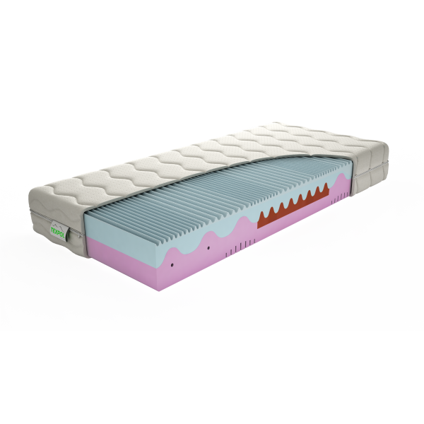 Luxusný 20 cm vysoký ortopedický matrac, ktorý vďaka zvolenému profilovaniu jadra a jedinečnej konštrukcii umožňuje dokonalé uvoľnenie a relaxáciu celého tela. Jedinečné 7-zónové anatomické spojenie 2 výnimočných materiálov VISCO peny v objemovej hustote 50 kg/m3 a PUR pien v hustote 28 a 30 kg/m3. Prevzdušnenie jadra kanálikmi a priečnou profiláciou. Matrac reaguje na teplo a tlak, a tak sa optimálne prispôsobí krivkám ľudského tela. Dokonalý relax vďaka zmäkčeniu v oblasti ramennej kolísky a vystuženiu v namáhavejšej bedernej časti.
