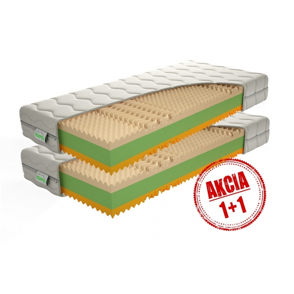 Obľúbený partnerský matrac s obojstrannou 5-zónovou profiláciou. Je vyrobený z kvalitnej PUR peny s vysokou hustotou. Vysoká kvalita pien a ich flexibilita predlžuje jeho životnosť až o polovicu. Povrch matraca je upravený obojstrannou profiláciou, ktorá zlepšuje prekrvenie pokožky a uvoľňuje svalstvo počas spánku. Matrac je vhodný aj pre páry s rôznou hmotnosťou, keďže obidve strany disponujú inou tuhosťou pien.
