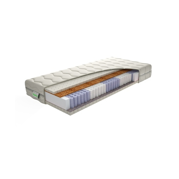 Komfortný taštičkový matrac STELA BIO je 21cm vysoký. Jadro sa skladá z taštičkových pružín usporiadaných do 5 anatomických zón. Tvrdšia strana je tvorená kokosovou platňou, ktorá zabezpečuje zvýšenie tuhosti a rýchlejšie odvádza vľhkosť matraca. Vrchnú časť z oboch strán tvorí latexová vrstva, ktorá zabezpečuje vysokú pružnosť a vysoký komfort ležania.