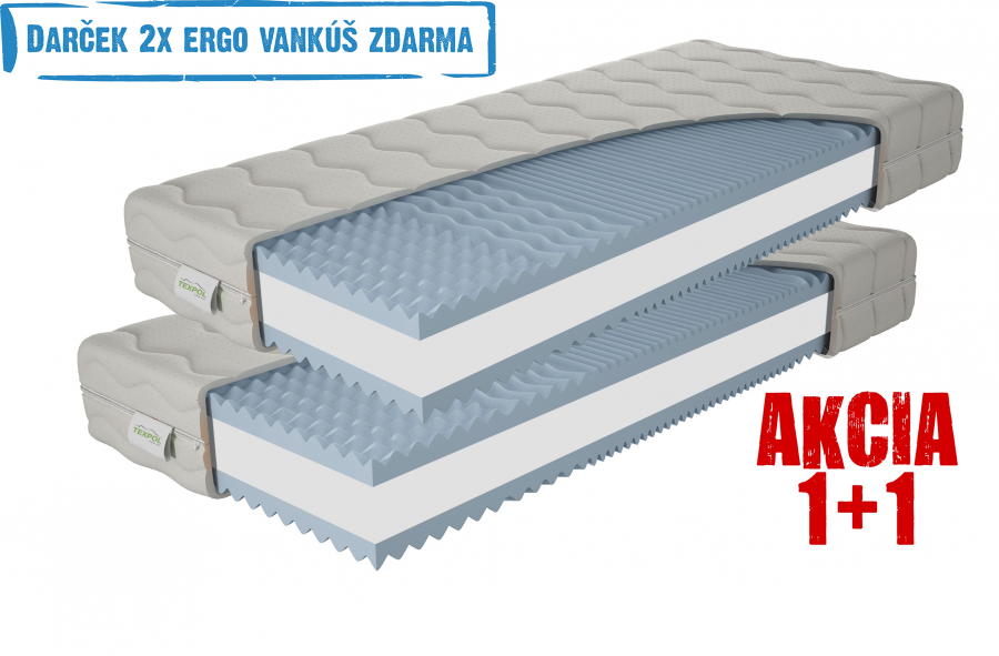 Obojstranný 7 - zónový matrac strednej tuhosti, ktorý sa skladá z troch druhov materiálu, kde základ tvorí PUR jadro a po oboch stranách sú profilované PUR peny s rôzne tuhou profiláciou - PUR 7 zón profil 28 kg/m3, PUR jadro 28 kg/m3, PUR 7 zón profil 30 kg/m3 • obojstranne použiteľný a cenovo výhodný matrac • Vďaka penovej profilácii povrchu matraca uvolňuje svalstvo a zlepšuje prekrvenie celého tela počas spánku • odporúčaný rošt: lamelový • štandardné vyhotovenie v poťahu - Silver Line • Poťah - SILVER LINE • Silver Line• kvalitný a príjemne mäkký poťah so schopnosťou regenerácie pokožky ľudského tela • certifikovaný a zdravotne nezávadný OEKO-TEX štandard • odzipsovateľný a prateľný do 60 °C • zloženie: 7% sim, 30% viskóza, 70% polyester, poťah zónovo prešitý s klimatizačnou výplňou, PES vláknom 250 gr/m2.